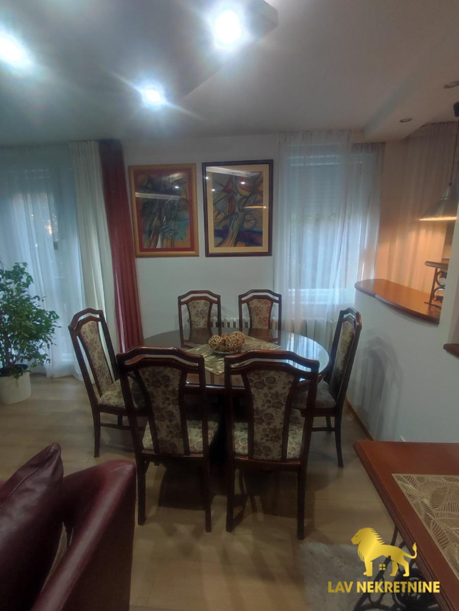Izdaje se prelep stan u Radničkoj ulici, useljiv odmah, kompletno opremljen. Stan je svetao, orijentisan na dve strane a pogled kroz prozore je lep, na krošnje drveća. Klima uređaj je takođe nov. Sudomašina, posuđe..
