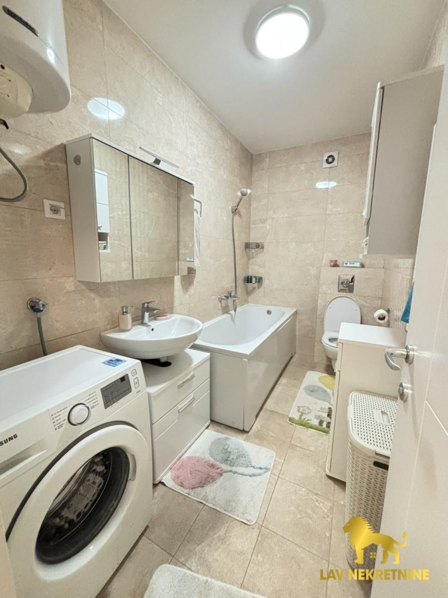 Stan poseduje masinu za sudove i dosta prostora za odlaganje garderobe. Moguce je dodatno zakupiti parking mesto u blizini zgrade. Niski troskovi - po potrosnji. Nije pet friendly.