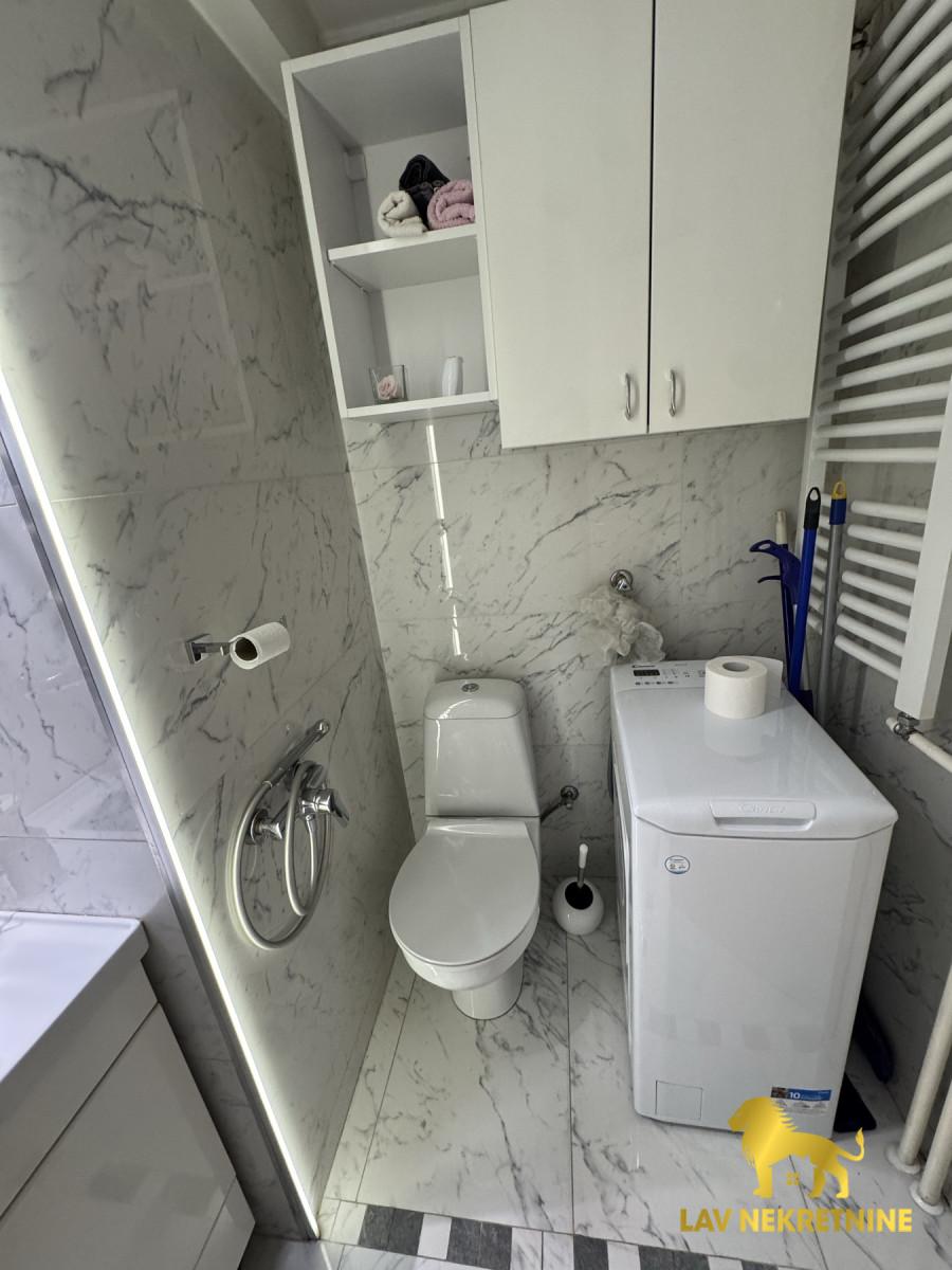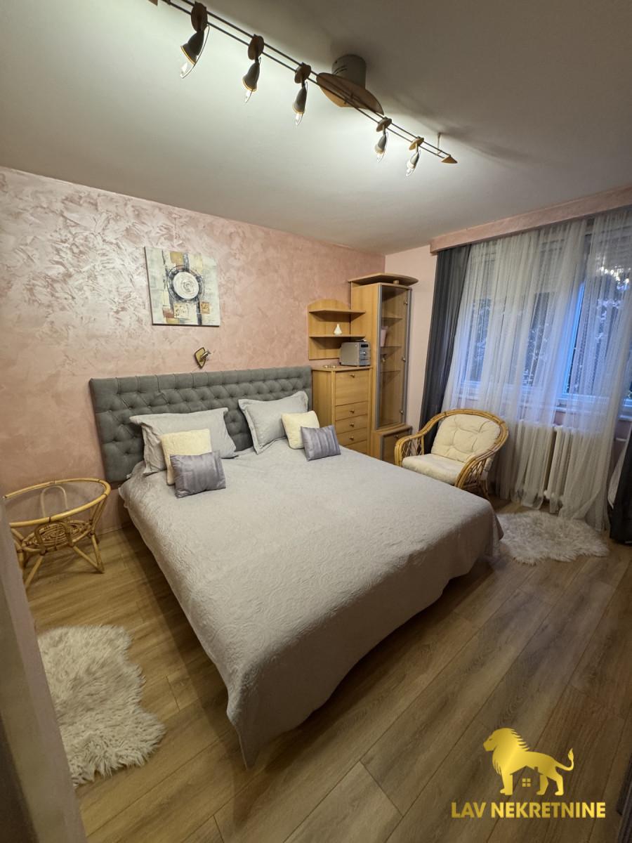 Izdaje se prelep stan u Radničkoj ulici, useljiv odmah, kompletno opremljen. Stan je svetao, orijentisan na dve strane a pogled kroz prozore je lep, na krošnje drveća. Klima uređaj je takođe nov. Sudomašina, posuđe..
